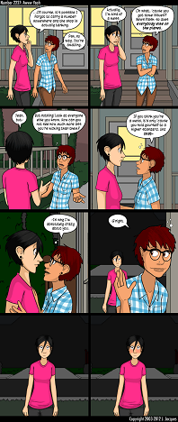 Something’s been a little… off with the much-teased potential relationship between Tai and Dora. Tai’s had a crush on Dora for some time, and a pairing between them seemed to be a natural result of the end of the relationship between Marten and Dora, one Jeph Jacques has gleefully exploited, especially recently. Of course, Dora wasn’t exactly ready to dip back into the dating pool right away, early attempt to do exactly that notwithstanding, but considering how slowly time passes in QC it wasn’t something Jeph could keep putting off forever. The post-breakup period is now almost 20% of the comic’s existence. That’s nearly a full fifth.