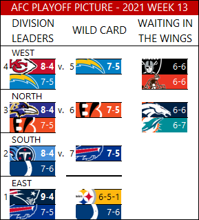 Chiefs(8-4) @ Broncos(6-6) – I still believe the Broncos will keep this from being a Nationally televised game and yep……..that's my reasoning still and yes, especially after Week 13