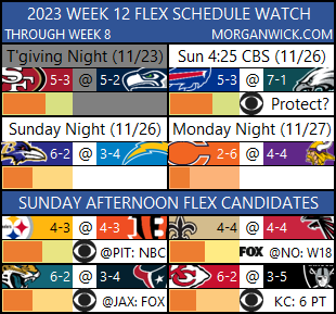 A potential flex game I haven’t heard many people mention: KC-Raiders. If Vegas wins against the Jets next week, & Chicago loses again, it could happen.