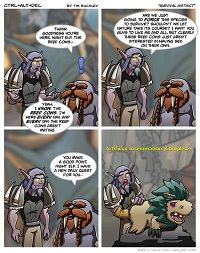 And then you have characters like Ethan of Ctrl+Alt+Del, so commonly accused of Sue-dom, but why? It seems to be mostly because Lucas and Lilah stick with him through thick and thin, which seems to me a pretty weak justification for a charge as serious as Mary Sue-dom. I could see it if Ethan were presented as consistently in the right, or if his “flaws” were, to use TV Tropes’ phrasing, presented as “endearing”, but pre-miscarriage Ethan’s antics seem to be to often be presented as being in the wrong, and that Ethan isn’t always supposed to be presented as the sympathetic character (and those times when he is implausibly successful often aren’t intended to be taken as seriously as the haters do). That Lucas and Lilah continue to stick with him may say more about them than about Ethan. But, of course, what does it say about them, and about how the whole strip is written?
